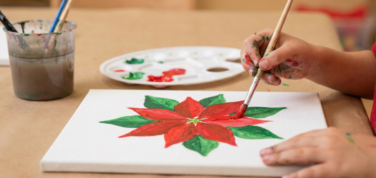 Join us for a fun and educational painting session inspired by Poinsettias! Led by Raquel Torrent of Art and Juice, this class introduces easy and enjoyable techniques to help you capture the beautiful essence of these winter blossoms on canvas.